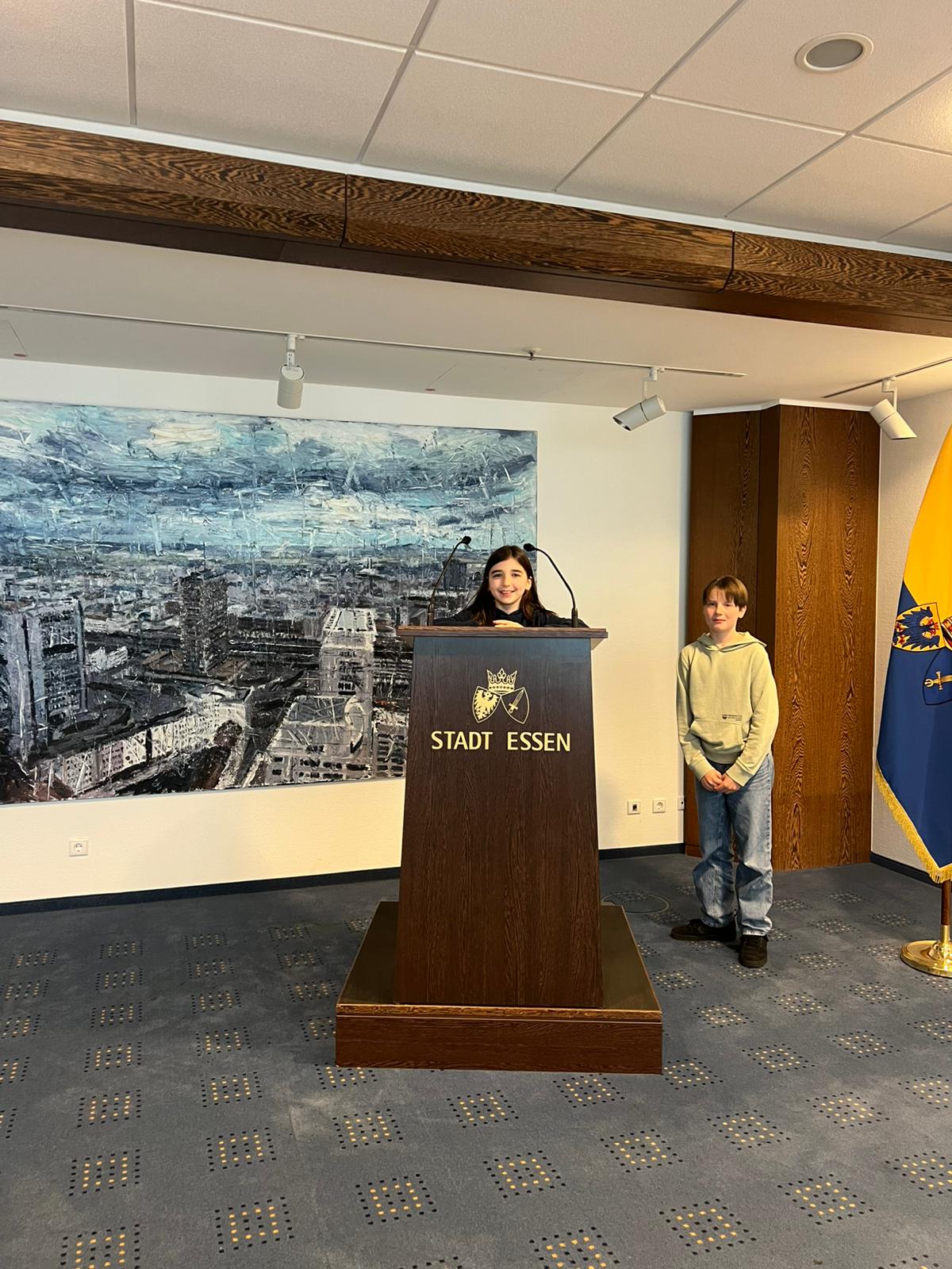 Am 18. November besuchte die Klasse 6e gemeinsam mit Frau Zöller und Frau Paß das Rathaus der Stadt Essen. Im Rahmen des Kinderforums erhielten die Schülerinnen und Schüler spannende Einblicke in die Arbeit der Stadtverwaltung und erfuhren aus erster Hand, wie politische Entscheidungen in Essen getroffen werden.