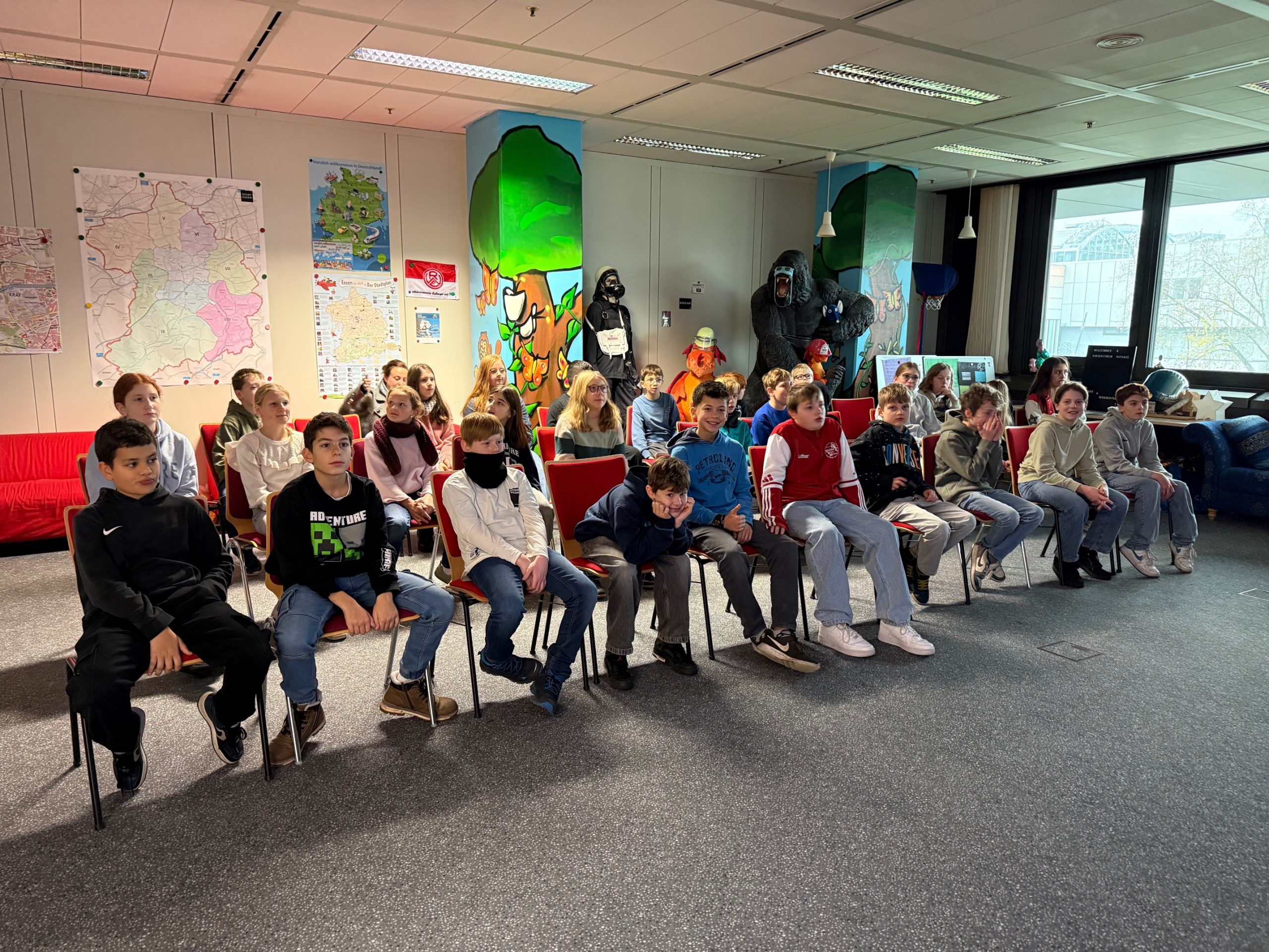 Am 18. November besuchte die Klasse 6e gemeinsam mit Frau Zöller und Frau Paß das Rathaus der Stadt Essen. Im Rahmen des Kinderforums erhielten die Schülerinnen und Schüler spannende Einblicke in die Arbeit der Stadtverwaltung und erfuhren aus erster Hand, wie politische Entscheidungen in Essen getroffen werden.