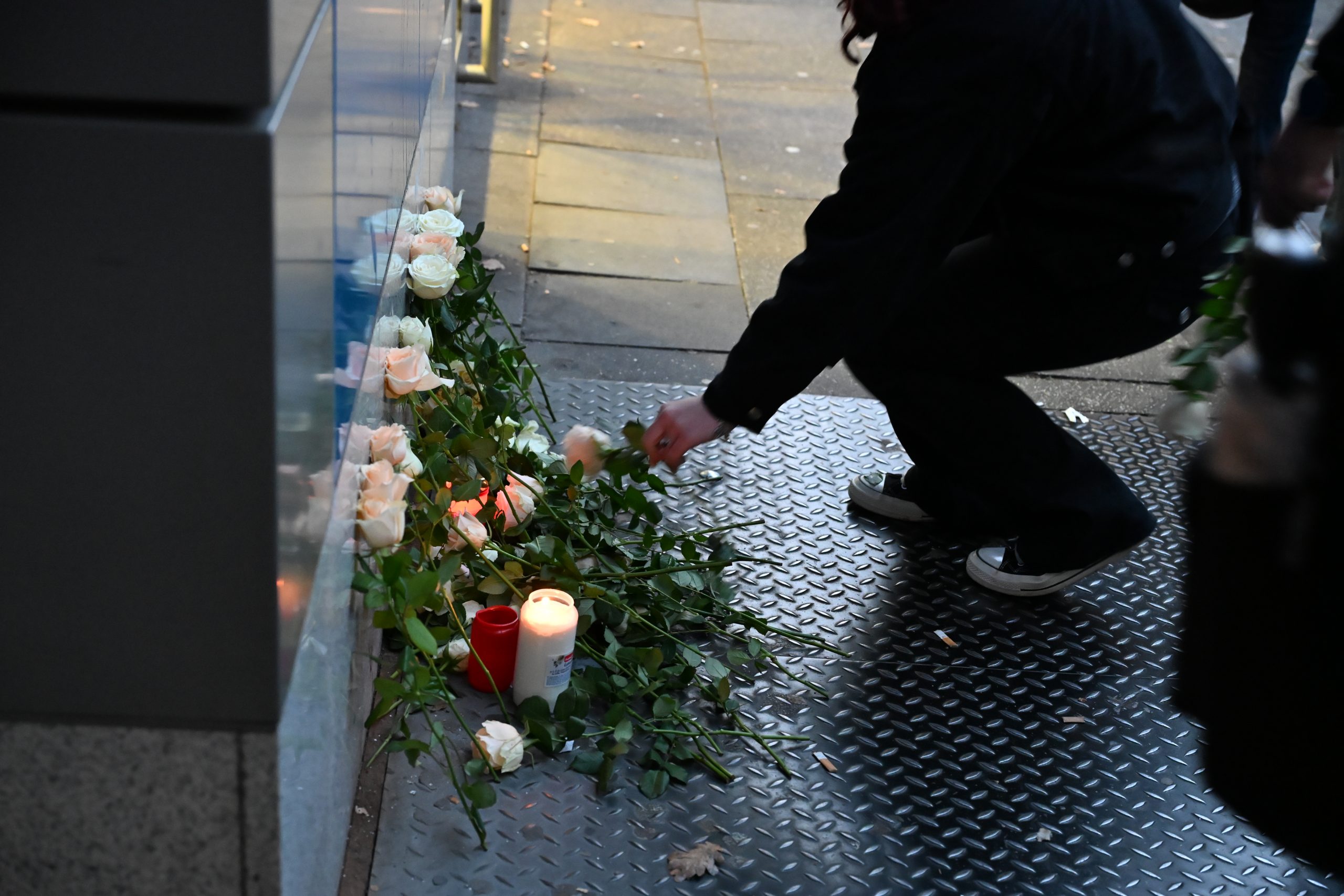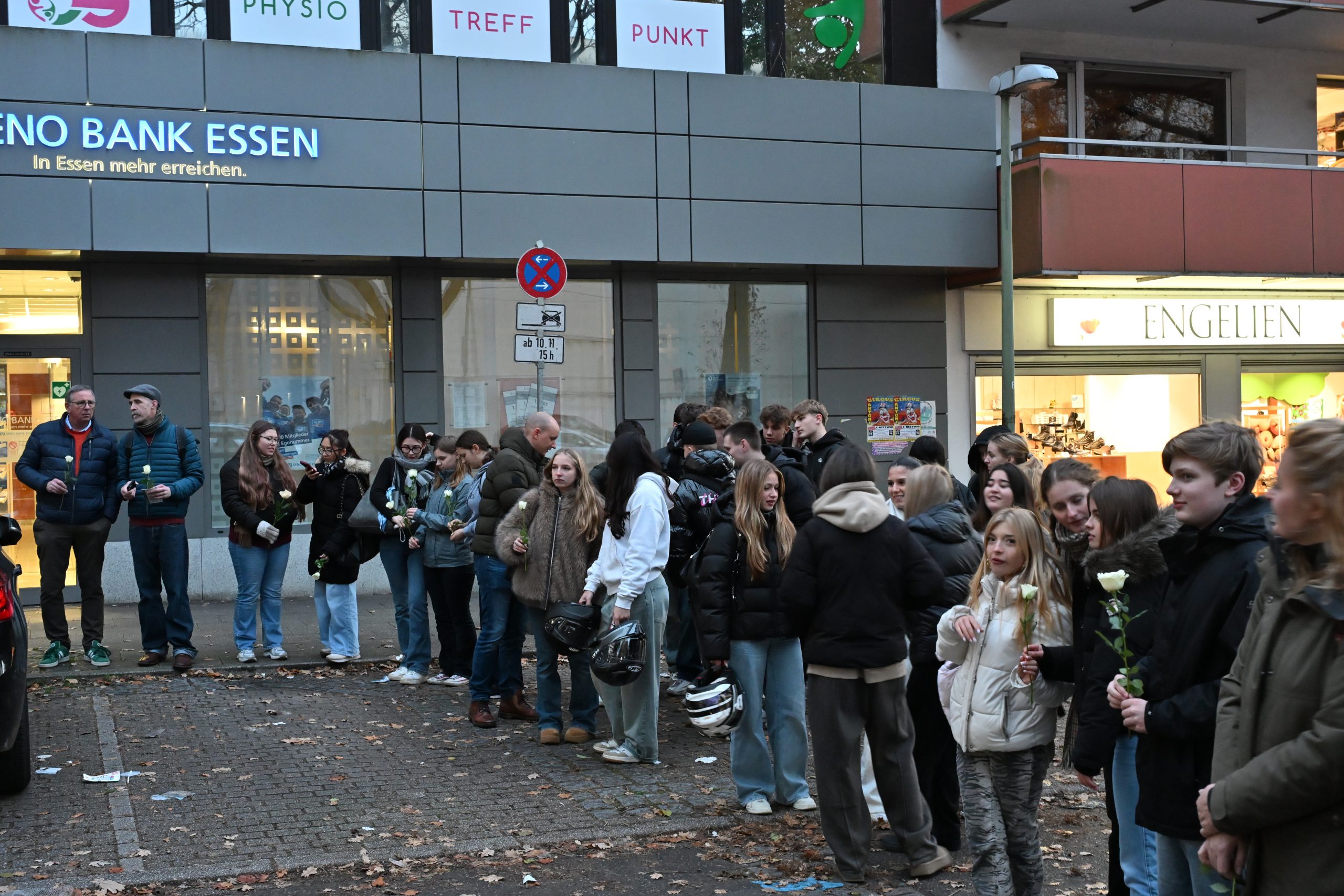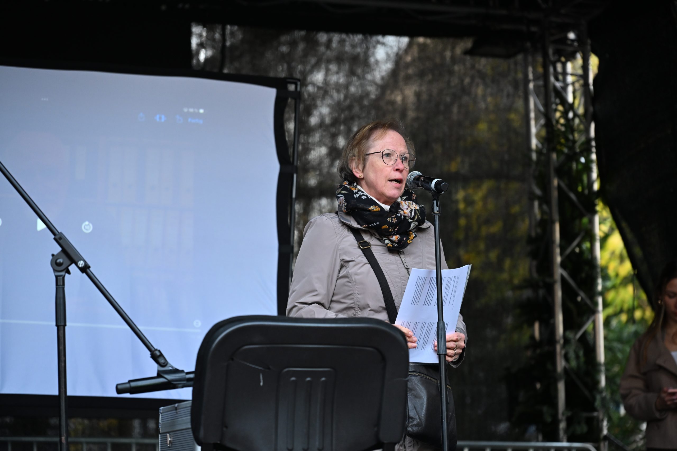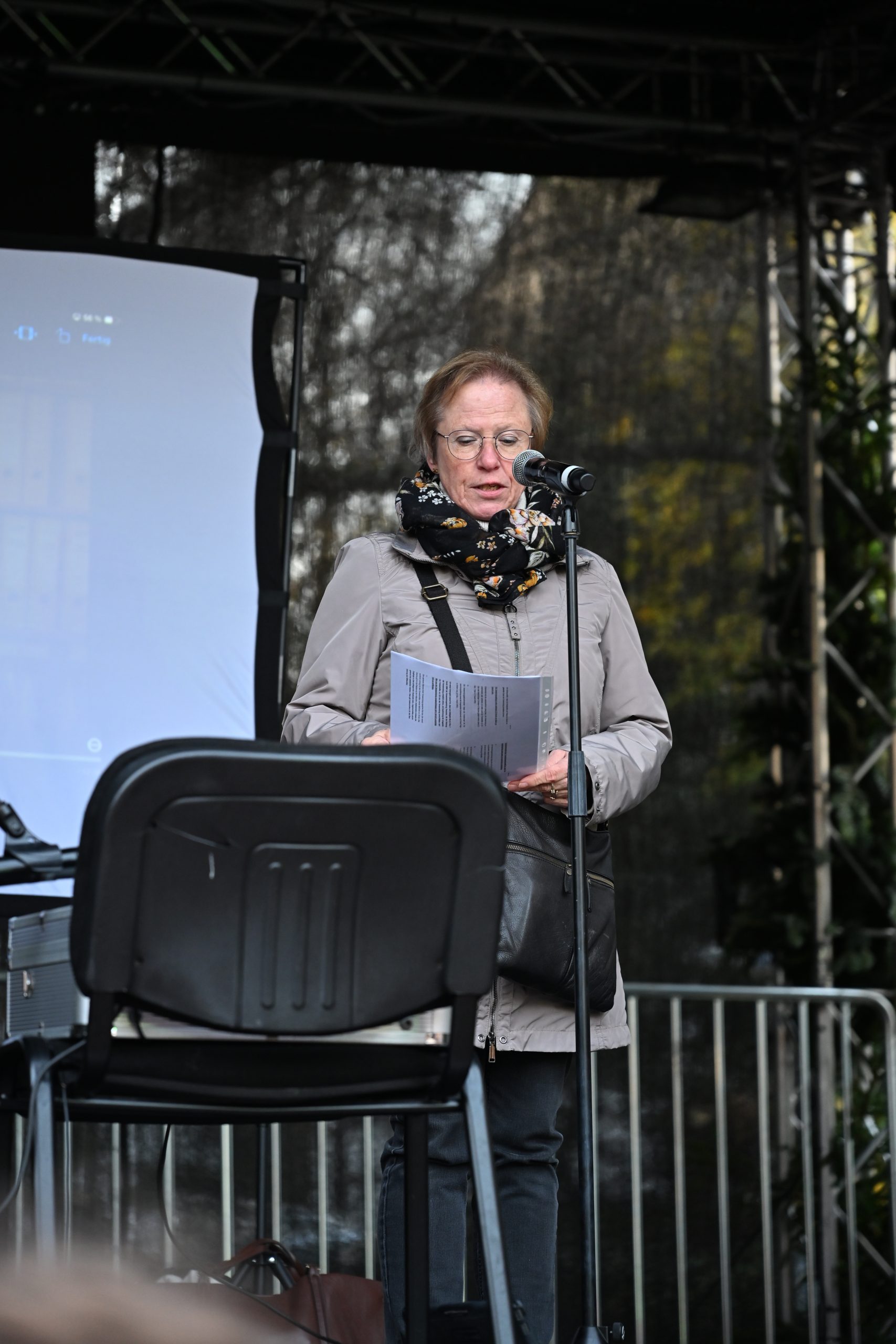 Nach dem Bühnenprogramm haben sich alle Beteiligten sowie Teilnehmende dieser Veranstaltung am Ort der ehemaligen Steeler Synagoge, die in jener Nacht im November 1938 durch einen von den Nazis gelegten Brand völlig zerstört worden ist, noch einmal zum stillen Gedenken versammelt.