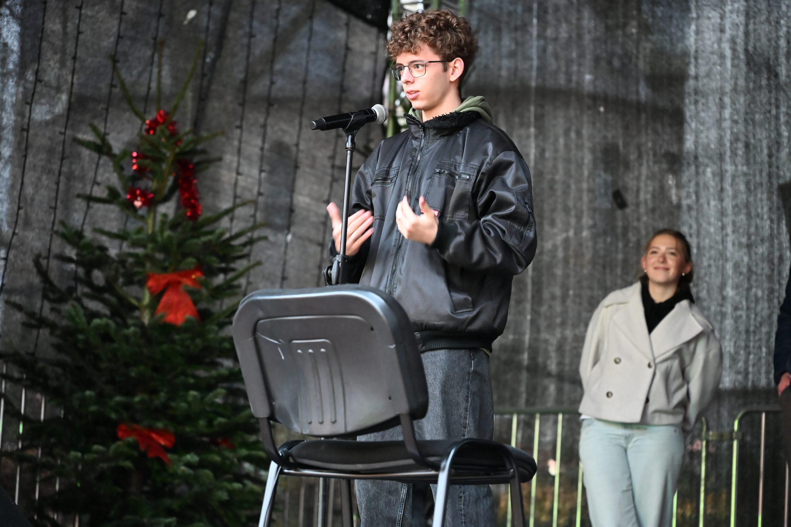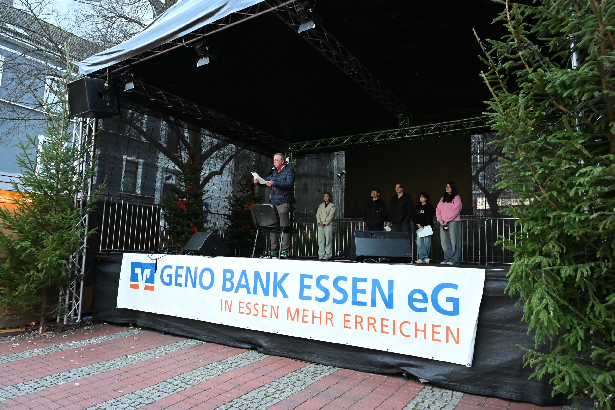 Zur Erinnerung an die Opfer dieses NS-Verbrechens haben Schüler*innen des Gymnasiums an der Wolfskuhle, der Erich-Kästner-Gesamtschule sowie Schüler*innen unserer Schule am 10. November auf der Bühne des Steeler Weihnachtsmarktes eine Gedenkstunde gestaltet. Diese Veranstaltung stand unter der Überschrift: Gegen das Vergessen.