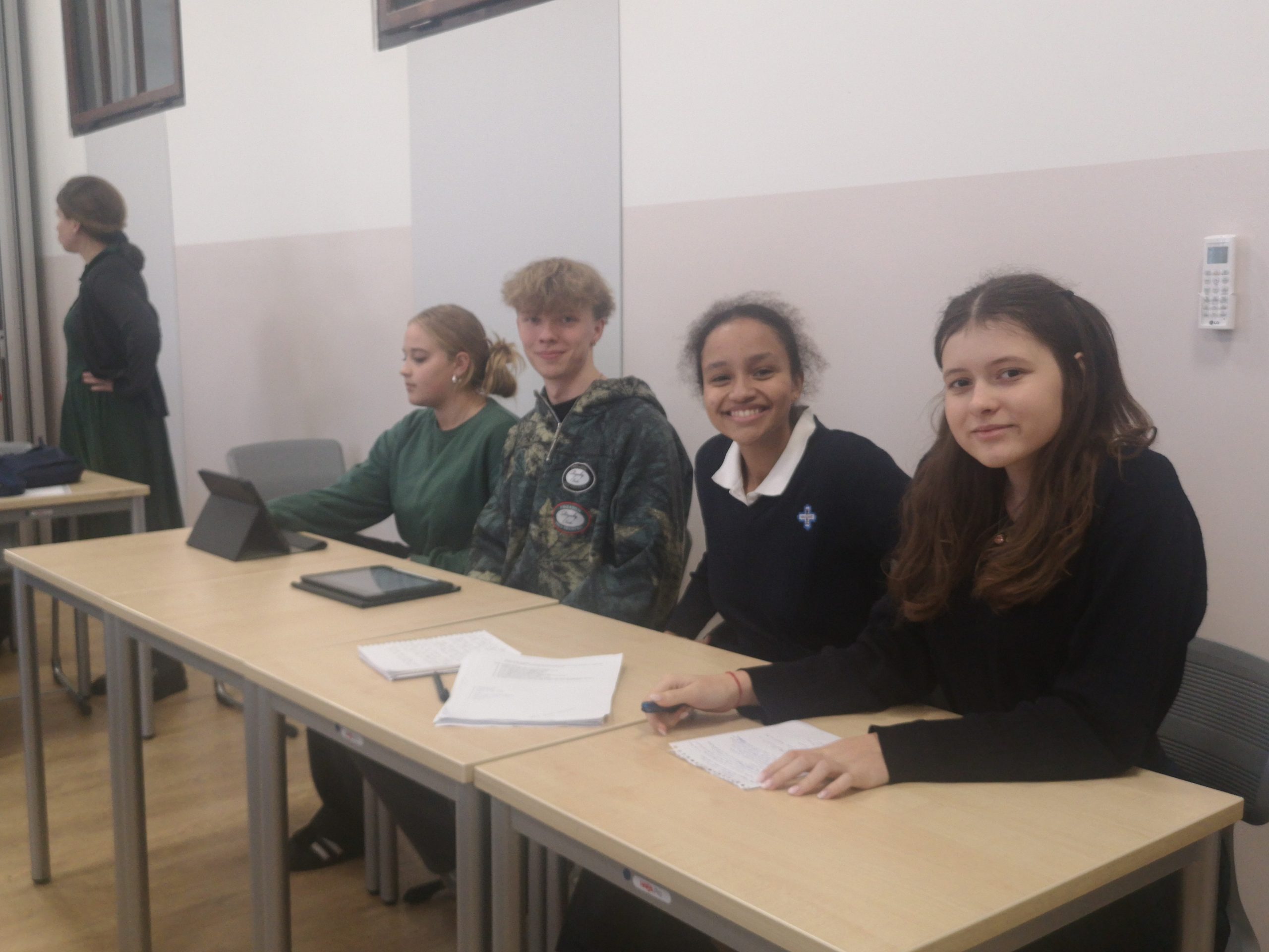 „Should die EU ban nuclear power?“ war die politische Frage, die am Donnerstag zunächst im Mittelpunkt stand. Hintergrund der Fragestellung war, dass während Deutschland gerade aus der friedlichen Nutzung der Kernenergie ausgestiegen ist, hat Polen den umgekehrten Weg des Einstiegs eingeschlagen und baut neue Kernkraftwerke – dabei natürlich nicht weniger von der sachlichen Richtigkeit der eigenen Position überzeugt wie unsere Regierung vom Ausstieg. Ausführlich bereiteten sich zwei gemischte Teams auf die abschließende Oxford-Debatte vor, indem sie sich in das Thema Kernkraft einarbeiteten, Argumente für die eigene Position, aber auch Strategien gegen mögliche Gegenargumente bedachten. Begleitet wurden sie dabei von den souveränen Mitgliedern des Debattierclubs der Nazareth-Schule, die eine tolle Hilfe darstellten. Voller Respekt und Anerkennung verfolgten nicht nur Frau Höch und ich den aktiven Debattenbeiträgen von Merle, Simon, Caja und Nicholas.