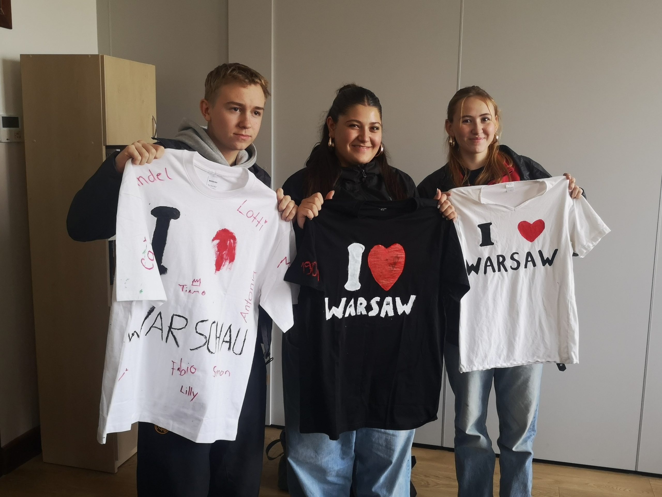 Im Zeichen der Verabschiedung stand der Freitag. Morgens führte die Fachgruppe Kunst eine T-Shirt-Aktion durch, später verabschiedete uns die Schule offiziell, bevor wir unsere Warschauer Zeit mit einer Selfie-Rallye im wunderbaren Łazienki-Park ausklingen ließen. Abends hob unser Flieger ab.