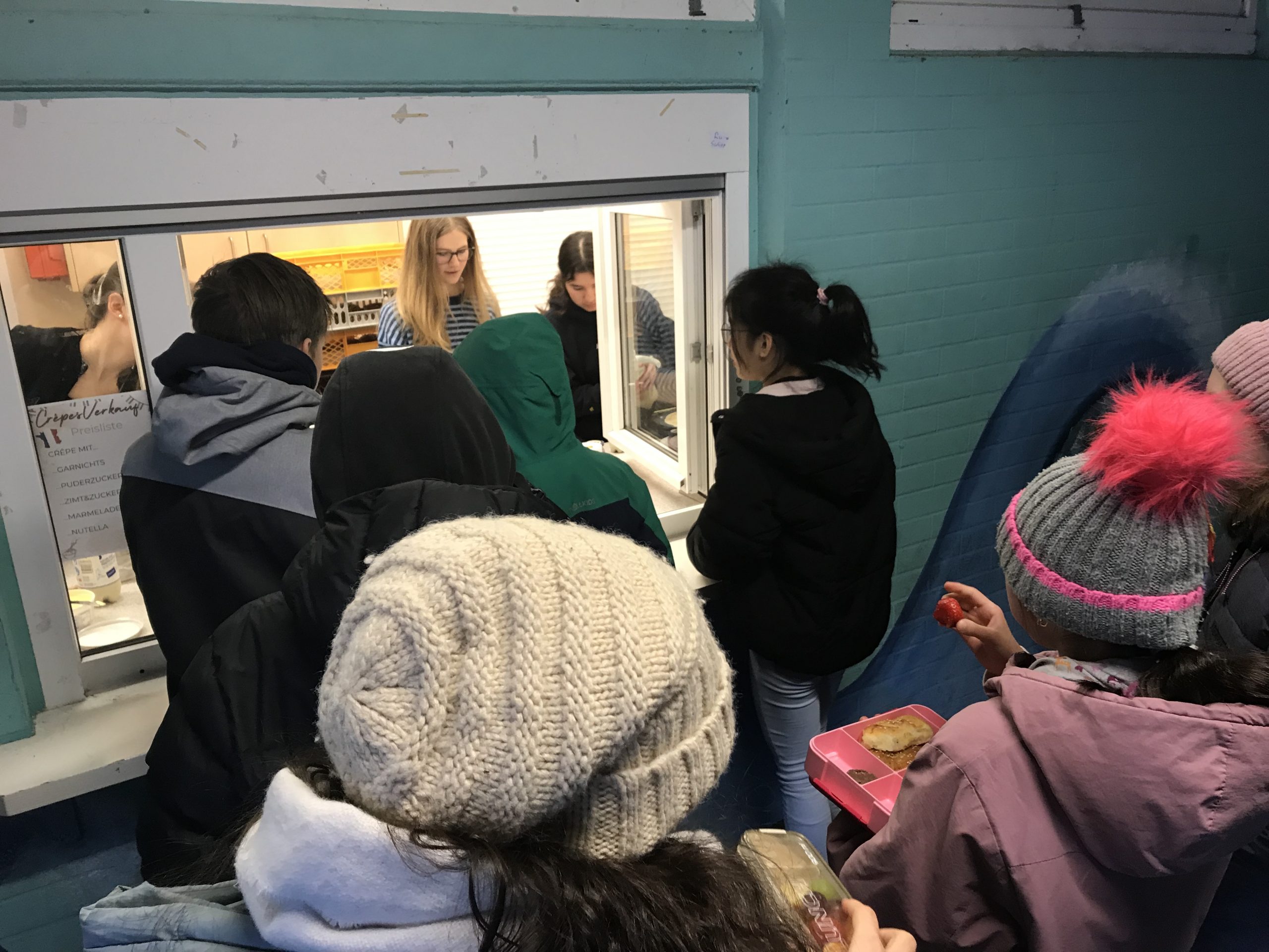 Um diesen Tag auch am CHG angemessen zu feiern und zu ehren, luden die Schülerinnen und Schüler der Q1 uns mit einer Durchsage dazu ein, das historische Ereignis und die deutsch-französische Freundschaft an diesem Tag auch zu feiern. Außerdem backten Schülerinnen der Q1 am Kiosk Crêpes und die EF versorgte uns mit pains au chocolat und Croissants als französische Köstlichkeiten. In der 2.großen Pause wurde mit allen Schülerinnen und Schülern gemeinsam das Lied „Vois sur ton chemin“ aus dem Film „Die Kinder des Monsieur Mathieu“ auf dem Schulhof gesungen, es wurde zu weiteren französischen Liedern getanzt und viel gelacht! Die Europahymne zu Beginn der Pause erinnerte uns daran: es lebe die deutsch-französische Freundschaft, es lebe Europa!