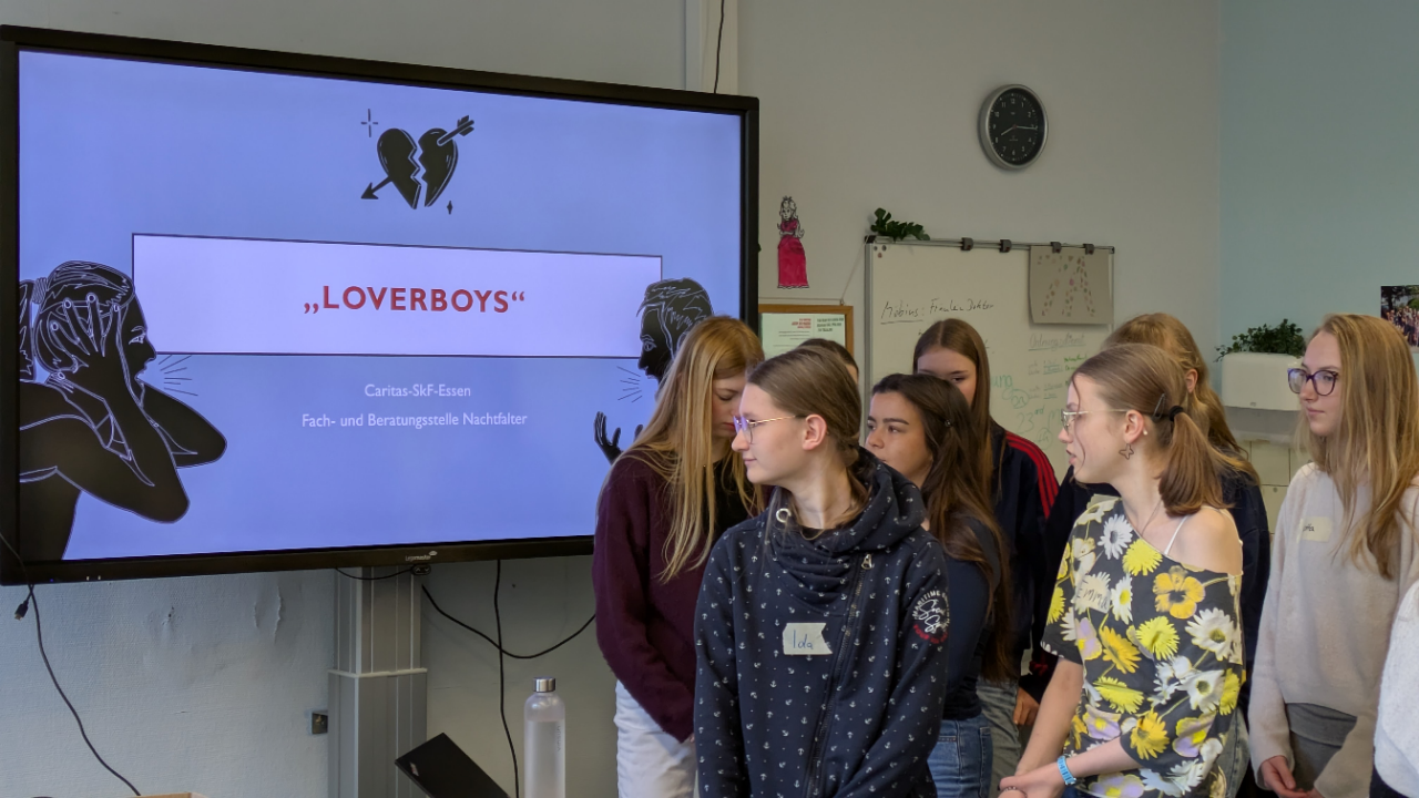 In dem zweistündigen, interaktiven Workshop setzten sich die Schülerinnen mit einem Thema auseinander, das oft unterschätzt wird – und das doch näher ist, als man denkt. Loverboys manipulieren gezielt junge Mädchen und Frauen, unabhängig von Herkunft oder sozialem Hintergrund, um sie skrupellos auszubeuten. Es sind fast ausnahmslos Mädchen und Frauen, die Opfer dieser Masche werden – und es kann jede treffen.